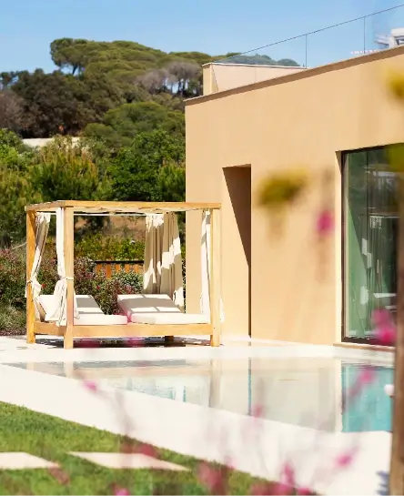 These units, fully furnished, have different types, configurations and locations, always maintaining the commitment to nature. Light, decoration, materials, sustainability, sophistication and good taste are shown in these units affirmatively and visibly. Within their various configurations, we find a living room, suites and master suites with dressing rooms and bathrooms, bedrooms, a kitchen, an entrance hall, a terrace, storage rooms and bathrooms. In the larger configurations, there is a sizable terrace (mostly covered by pergolas), a jacuzzi (optional), several seating areas and a solarium. There are several options available. One of them is yours.