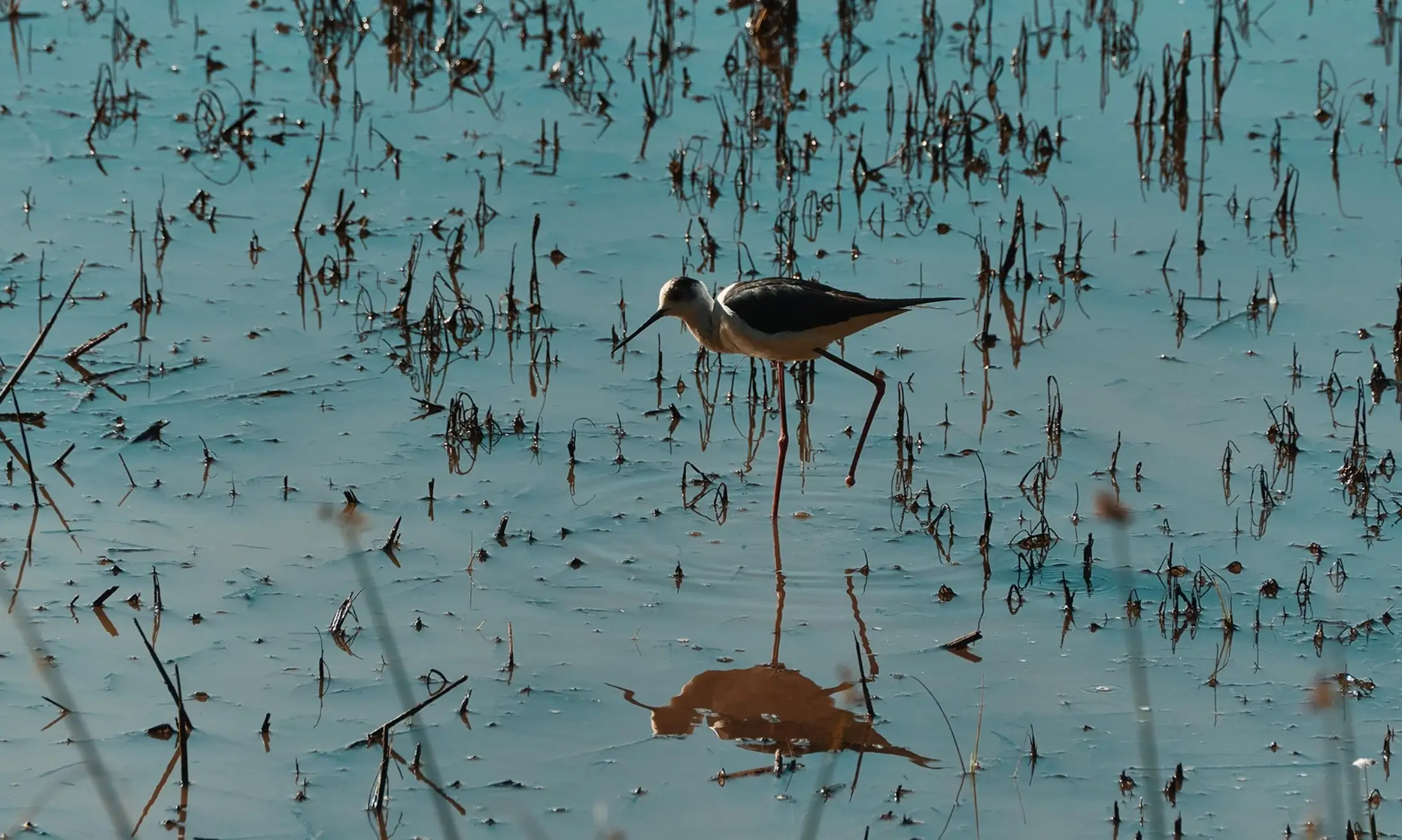 1 km y quince minutos a través de una zona de vegetación baja, donde se pueden ver dos estanques temporales donde viven y coexisten especies autóctonas, que conforman la biodiversidad local. Los eucaliptos bordean el sendero con sombra constante, y donde persisten los sonidos y las sensaciones que ofrece la naturaleza. El Hotel Verdelago irrumpe sutilmente en este sendero, ofreciendo sombras más intensas y presentes. Termine al borde del estanque y disfrute de las vistas al final del sendero natural que acaba de recorrer.
